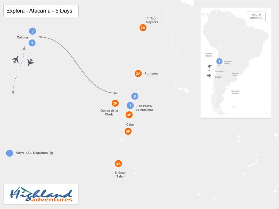 Flights: Flight should arrive at least an hour before scheduled transfers from Calama Airport to Explora Hotel: 12 Noon, 2 PM, 4 PM and 6 PM. Private transfer available for an additional cost.