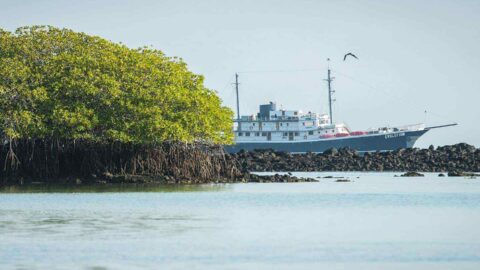 Black Turtle Cove, located on the northern coast of Santa Cruz Island, is a complex of tidal mangrove lagoons that serve as a safe haven for marine life. Accessible only by boat, this tranquil area is frequented by sea turtles, rays, and juvenile sharks, which use the calm, nutrient-rich waters as a nursery and feeding ground. The mangroves themselves play a critical role in nutrient cycling and shoreline stabilization.
