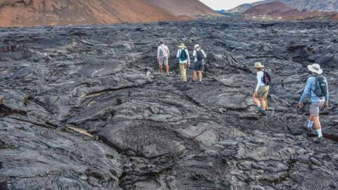 Chinese Hat Islet is a small volcanic cone off Santiago Island's southeastern coast. Its iconic conical shape and stark lava formations provide insight into the archipelago's geological history. The surroundings offers opportunities for snorkeling and dinghy rides in the calm waters of the crescent-shaped cove. Sea lions bask on the white sandy beach, while marine iguanas and lava lizards inhabit the rocky areas. As you explore the islet's interior, witness unique Galapagos wildlife and the distinctive pahoehoe lava formations.