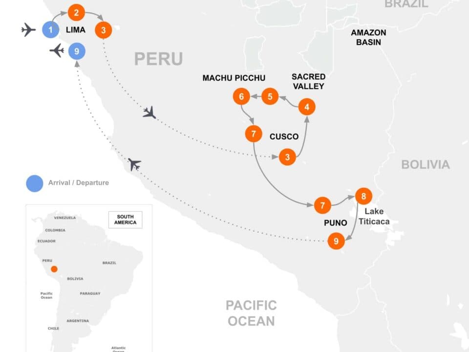 Enjoy a tranquil morning stroll through the charming city of Puno, savoring its unique ambiance before proceeding to the airport for your flight to Lima. If time permits, we will stop at the renowned Sullistani tombs, an ancient burial site showcasing fascinating funerary towers that bear witness to the rich cultural heritage of the region.